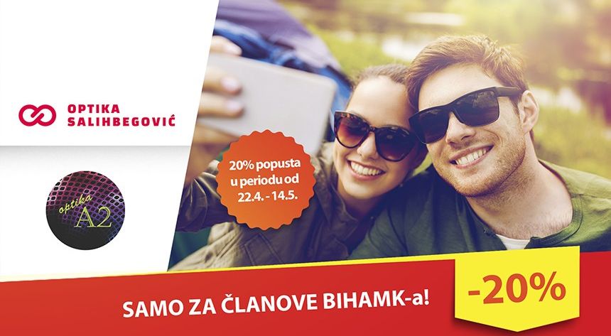 U periodu od 22.4. – 14.05.2019. godine Optika Salihbegović iz Sarajeva obezbjedila je svim članovima BIHAMK-a čak 20% popusta na sve vrste naočala, dok je optika A2 iz Zenice obezbjedila popust od 20 % na sve dioptrijske okvire i sunčane naočale!