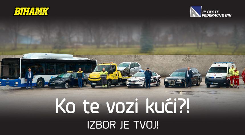 BIHAMK apeluje na sve vozače na poštivanje saobraćajna pravila, da prilagode vožnju uslovima na cesti, ne voze u alkoholiziranom stanju, ne koriste mobilne uređaje tokom vožnje, niti da voze umorni zbog vlastite sigurnosti, ali i sigurnosti drugih učesnika u saobraćaju. „Ko te vozi kući ?“. Izbor je tvoj. Ukoliko vožnju ne možete obaviti bezbjedno, razmislite o alternativnim načinima prijevoza.