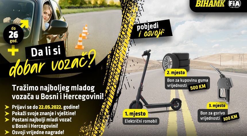 Prvo finalno državno takmičenje u spretnosti vožnje i poznavanja saobraćajnih pravila, u organizaciji Bosanskohercegovačkog auto-moto kluba (BIHAMK-a), održat će se 09. septembra. 2022. godine u Zenici u Srednjoj mještovitoj školi Mladost, sa početkom u 10.00 sati.
