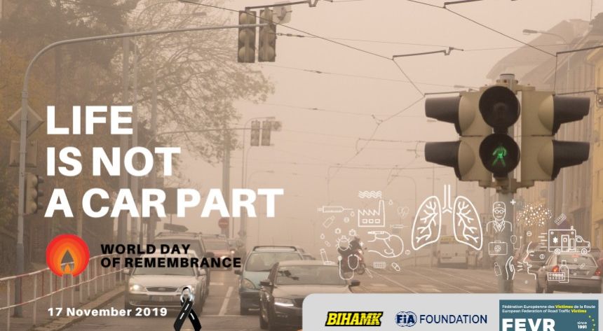 Svjetski dan sjećanja na žrtve saobraćajnih nezgoda (eng. “World Day of Remembrance for Road Traffic Victims“) obilježava se svake treće nedjelje u mjesecu novembru/studenom. Ove godine 17.novembra/studenog prisjećamo se miliona ljudi koji su izgubili živote ili su povrijeđeni u cestovnim nezgodama, te iskazujemo suosjećanje sa svima onima koji su ostali iza žrtava, članovima njihovih porodica i prijateljima.
