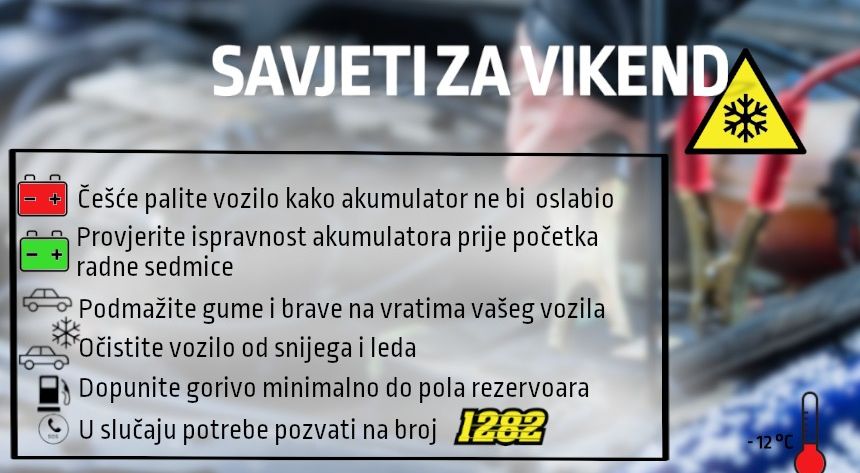 Osim zimske idile i dječijeg raspusta, zima zbog niskih temperatura i snijega svojim dolaskom donosi i određene probleme za sve vozače koji se najčešće odnose na pokretanje automobila ili zamarajućeg čišćenja automobila. Stoga je ova najava niskih temperatura prilika da još jednom podsjetimo vozače da izvrše pripremu svog vozila za zimske uvjete vožnje kako bi izbjegli probleme i na vrijeme stigli na posao.