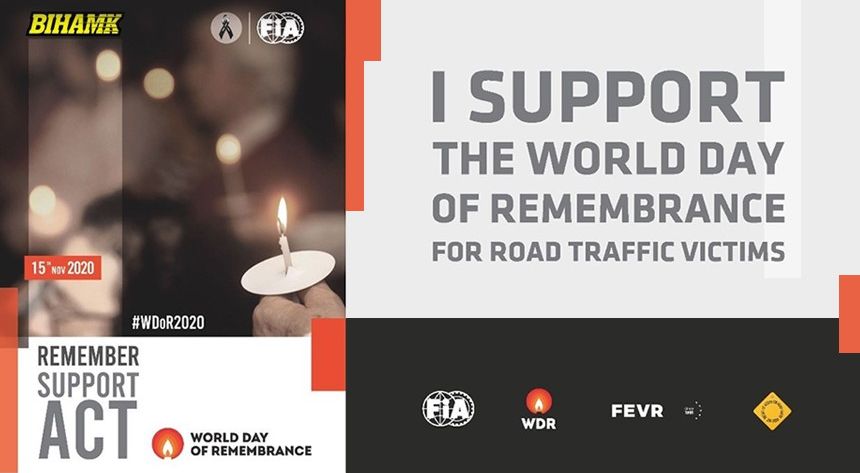 15. novembra/studenog 2020. godine širom svijeta obilježava se „Svjetski dan sjećanja na žrtve saobraćajnih/prometnih nezgoda“ (eng. “World Day of Remembrance for Road Traffic Victims“).