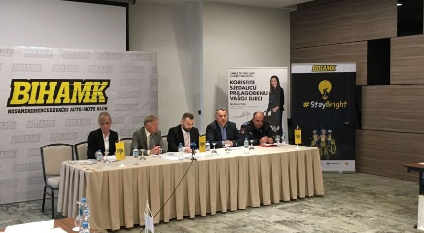 Pored prezentacija kojima je tretirana problematika sigurnosti djece u saobraćaju, BIHAMK je predstavio i podatke o realizaciji kampanje “Sigurno vezani u vozilu” u okviru koje su na više lokacija u BiH kroz simulaciju saobraćajnih nezgoda korištenjem Simulatora čeonog sudara, podjelu informativno-edukativnog materijala roditelji uvjerili u važnost korištenja sigurnosnih sjedalica - jedinog sistema zaštite djece tokom vožnje. Osim navedenog roditeljima koji su djecu prevozili ispravno vezanu u dječijim sjedalicama podjeljene su i majice “Mama/Tata sa 5*”, dok su u okviru digitalne kampanje na web stranici, You Tube kanalu i fb stranici BIHAMK-a, kao i vanjskim web stranicama prikazani video spotovi koji ukazuju na značaj korištenja autosjedalica. Obzirom da su istraživanja o upotrebi sigurnosnih sjedalica provedena i prije i nakon završetka kampanje, možemo reći da je ista bila uspješna, jer se procenat korištenja autosjedalice povećao sa 29% na 42%.