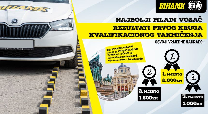 U periodu od 01 - 15. juna/lipnja 2023. godine Bosanskohercegovački auto-moto klub (BIHAMK) proveo je prvi krug kvalifikacionog dijela državnog takmičenja „Najbolji mladi vozač“. Na osnovu rezultata prvog testa formirana je rang lista od 137 najuspješnijih takmičarki i takmičara, koji su na testu imali minimalno 85% tačnih odgovora i koji su se plasirali u drugi krug kvalifikacionog dijela takmičenja.